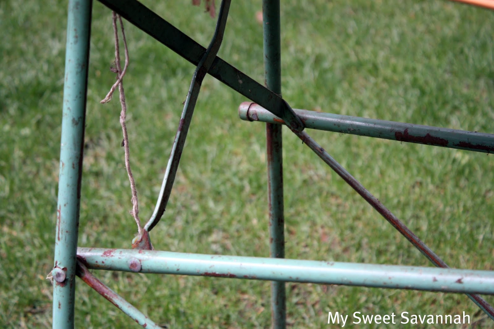 First thing I found was this old wood ironing board with jadeite green metal legs.
